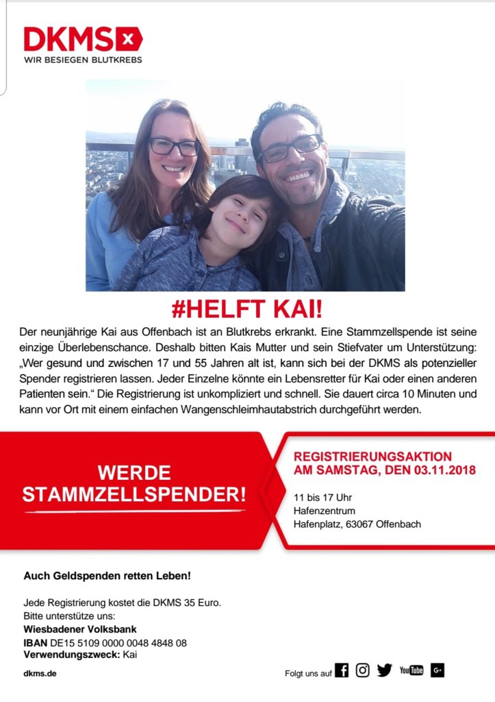 leider ist unser Schüler Kai an Blutkrebs erkrankt und braucht jede Unterstützung!