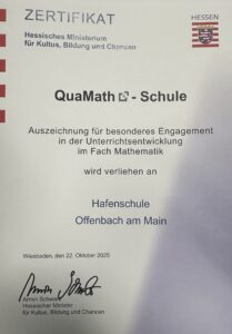 Hafenschule als QuaMath-Schule ausgezeichnet! 27. Oktober 2025 / Die Hafenschule wurde als QuaMath-Schule ausgezeichnet, eine besondere Anerkennung für engagierte Schulen, die sich intensiv mit der Weiterentwicklung des Mathematikunterrichts beschäftigen.